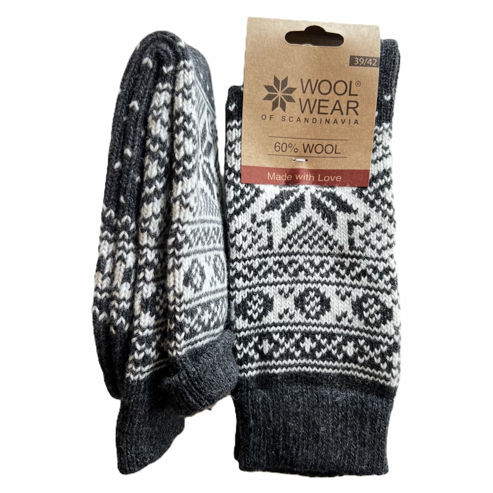 Wollsocken aus 60 % Wolle mit schönem Schneeflockenmuster